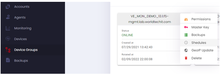 Click āDevice Groupā on the left menu to enter the section.To take a backup, first select the menu icon of the device groups you wish to initiate backups for and select āBackupsā