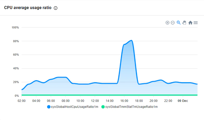 BIG-IP devices enrolled in monitoring receive advanced statical graphs for the following: CPU average usage ratio: Provide definition