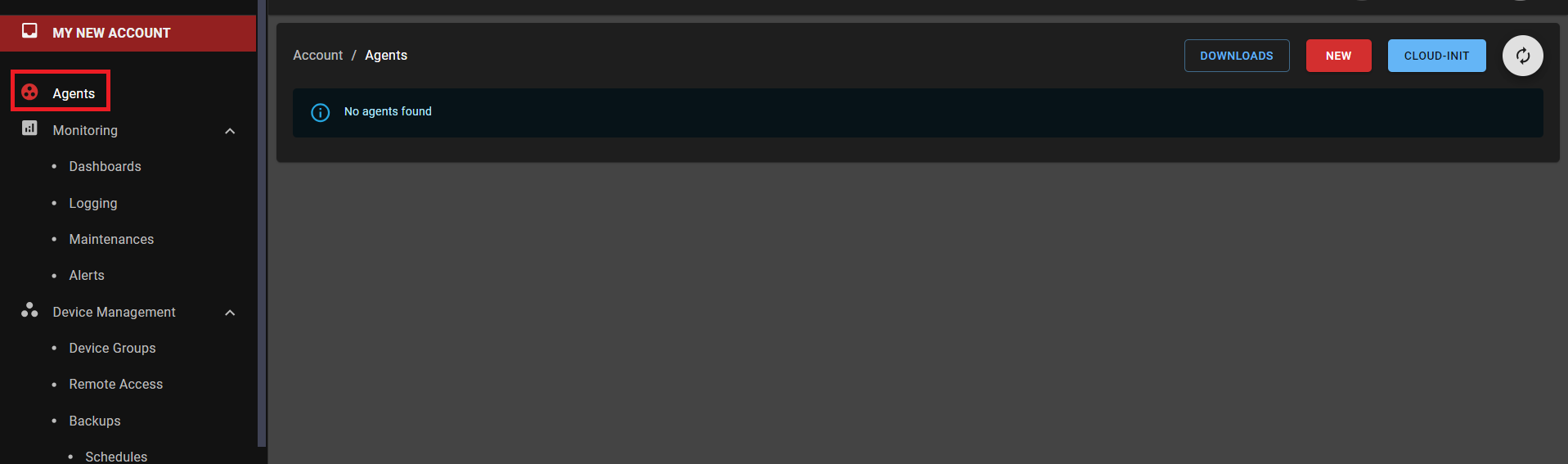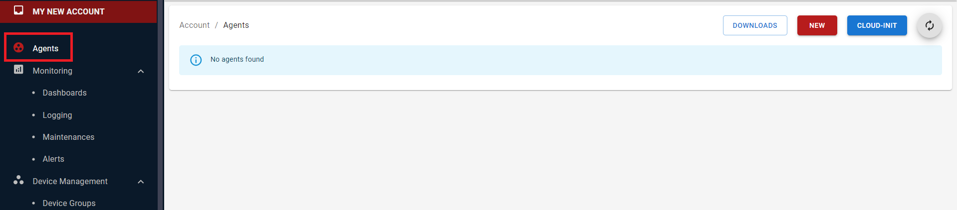 Copy the code displayed in the middle of the registration page seen in step 1.Go to Cloud.Red and navigate to the agents tab on the left-hand menu.