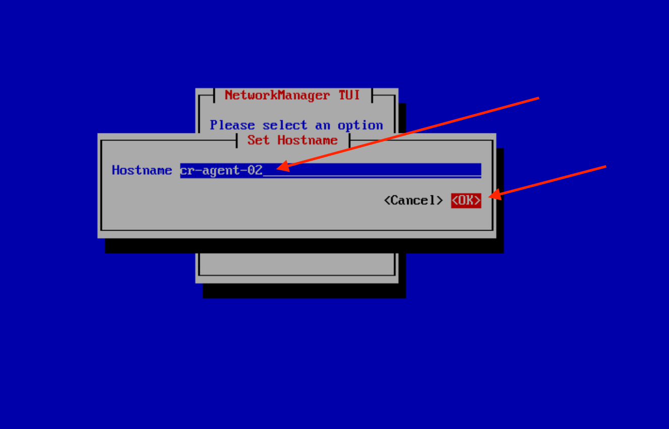 Once back to the Main Menu, any IP changes or Hostname changes made will be applied and visible in the menu GUI.