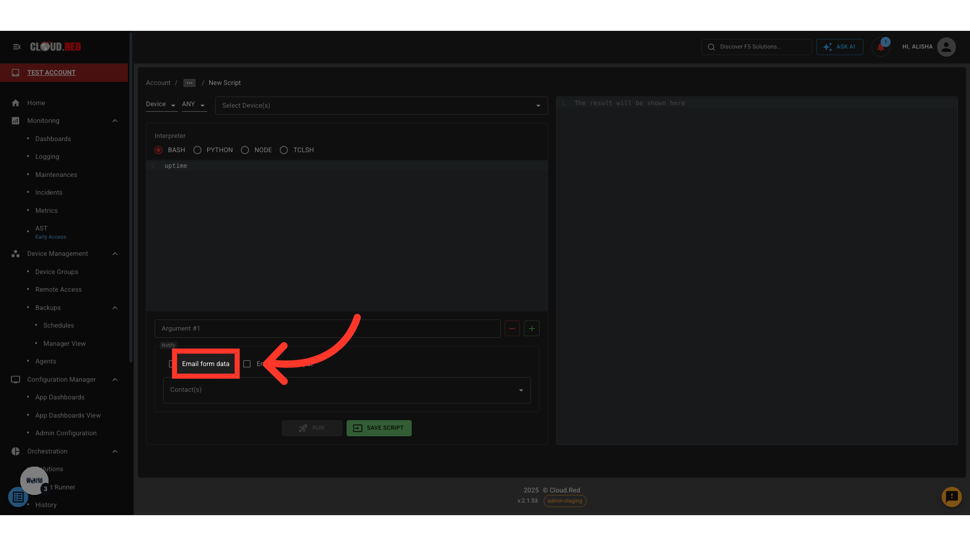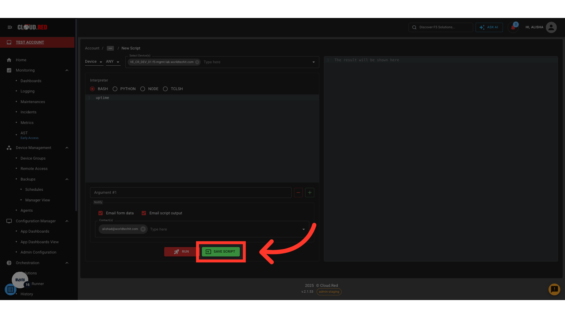 A Script in Script Runner is a lightweight program that can be executed directly on the F5 platform to perform a wide variety of actions.We currently support four interpreters: