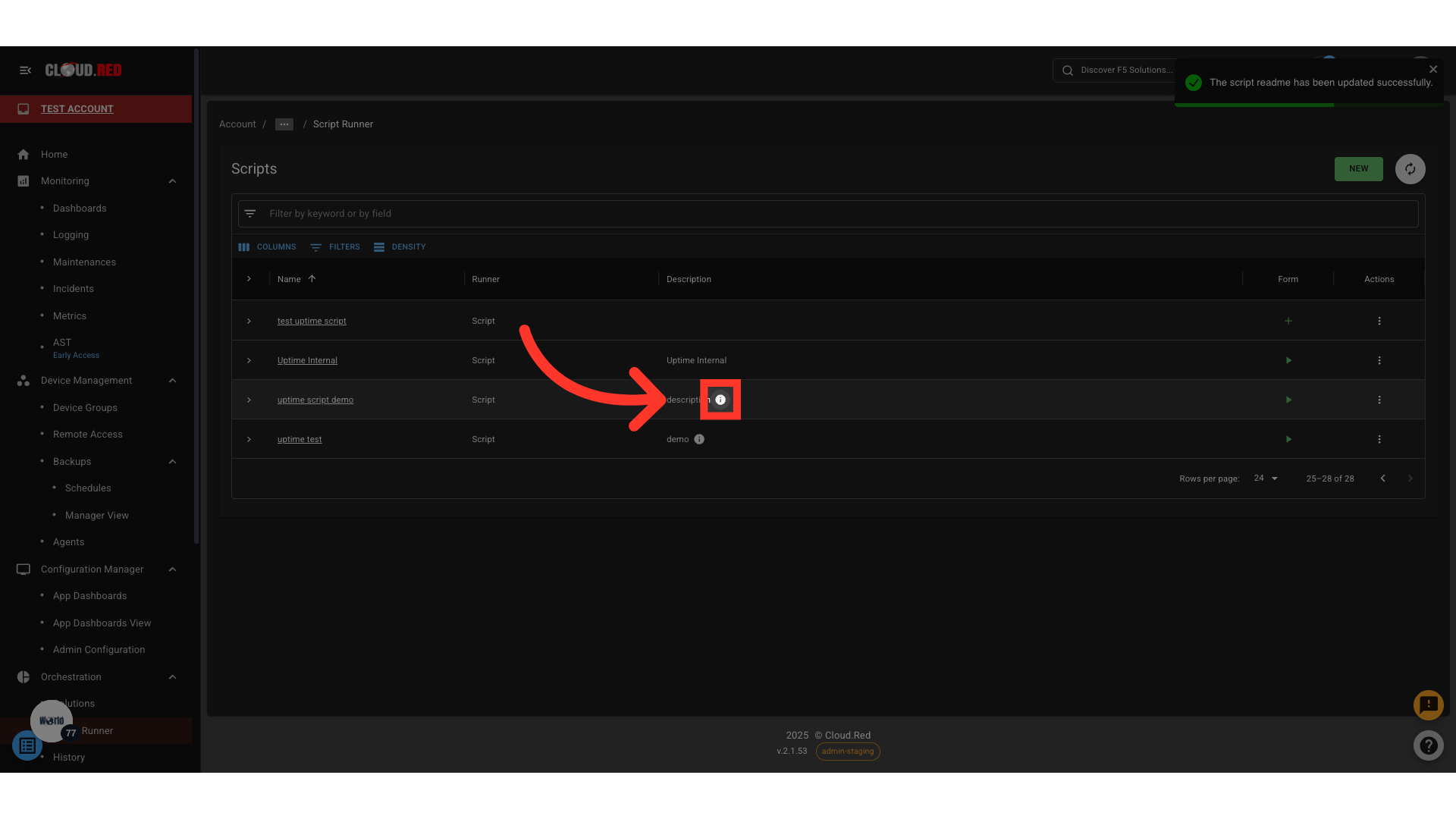 A README file can be found for a script or a service to provide documentation, usage notes, or additional context.β€ Access the README Tab
